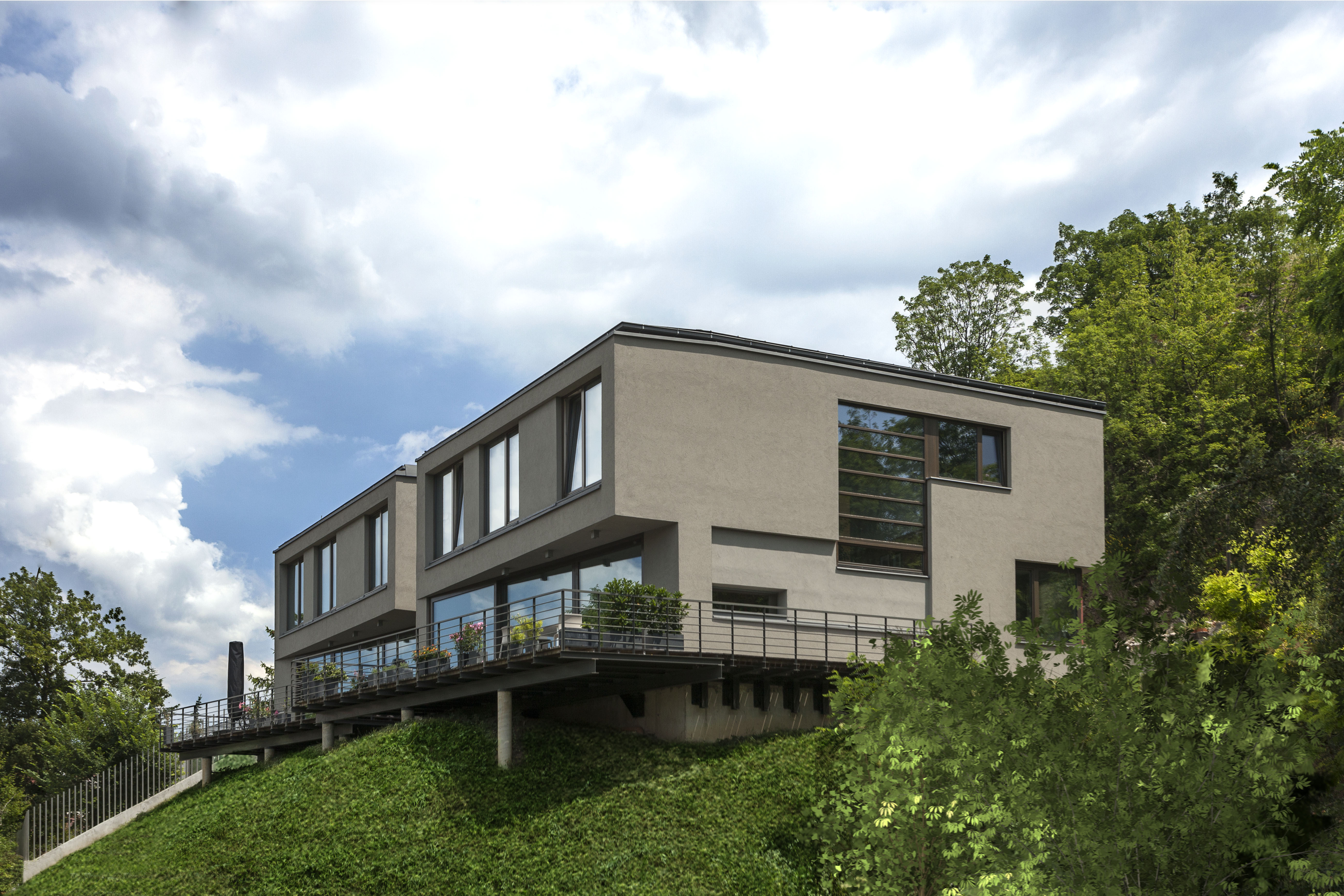 Az Év Homlokzata 2016 társasház kategória díjazottja a Benczúr-Weichinger Studio, a Budapest II. kerületében épült kétlakásos ház építészei: ifj. Benczúr László és Weichinger Miklós.