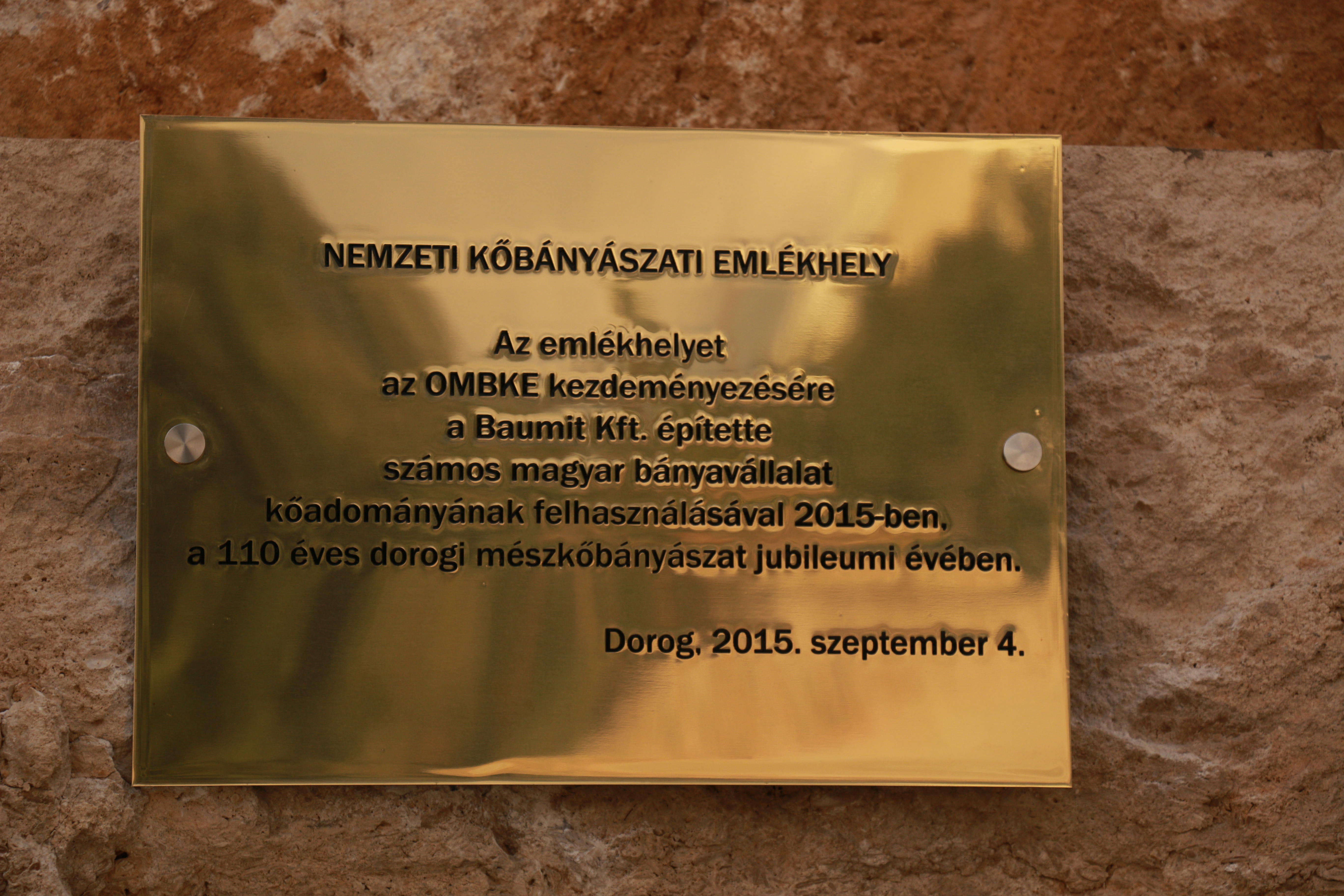 A Nemzeti Kőbányászati Emlékhelyet az Országos Magyar Bányászati és Kohászati Egyesület (OMBKE) kezdeményezésére a Baumit Kft. építette számos magyar bányavállalat kőadományának felhasználásával 2015-ben, a 110 éves dorogi mészkőbányászat jubileumi évében.