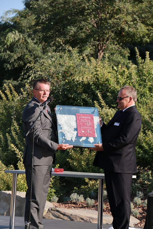 Dorog városának nevében Dr. Tittmann János polgármester a Baumit Kft.-nek negyedszázados, sikeres együttműködésük elismeréseként egy rendhagyó emléklapot adott át, melyet stílusosan kőbe véstek.