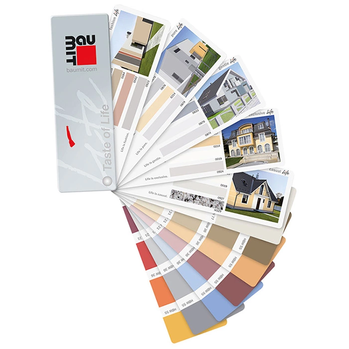 A Baumit Life színvilág harmonikus, trendkövető 88 színéből összeállított színkártya, amely könnyen kezelhető és alkalmazási ötleteket is tartalmaz, így megkönnyíti a színválasztást.