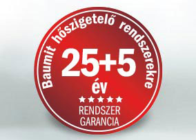 A Baumit Kft. a 25+5 éves rendszergaranciával garantálja, hogy az általa rendszergazdaként szállított homlokzati hőszigetelő rendszerek – az előírásoknak mindenben megfelelő kivitelezés és rendeltetésszerű használat esetén – a garanciális idő alatt a beépítési állapotnak megfelelő műszaki tartalommal és a rendszer hatékony működését veszélyeztető funkcióvesztés nélkül szolgálják a Megrendelői igényeket.
